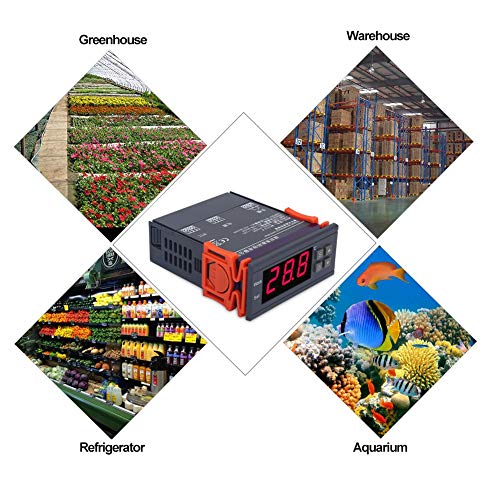 【REGOLATORE DI TEMPERATURA DIGITALE】 Questo controller di temperatura digitale con ampio display LCD chiaro può misurare e regolare la temperatura da -50 a 110 ℃. Dispone di modalità di riscaldamento e raffreddamento, calibrazione della temperatura, funzione di avvio ritardato, ripristino delle impostazioni di fabbrica, ecc.