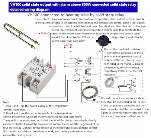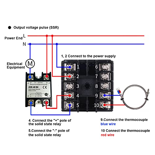 【Funzione di allarme】: Controllo preciso: quando viene immesso il segnale della termocoppia, allarme: regolazione ed errore del valore alto e basso del sensore. Supporta ingresso termocoppia a 2 fili, 1 uscita relè a stato solido e 1 uscita allarme relè.