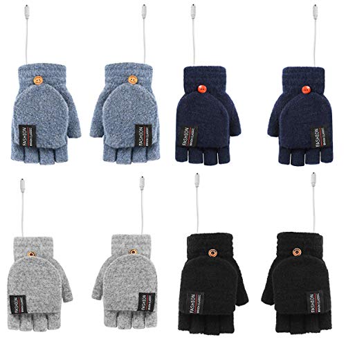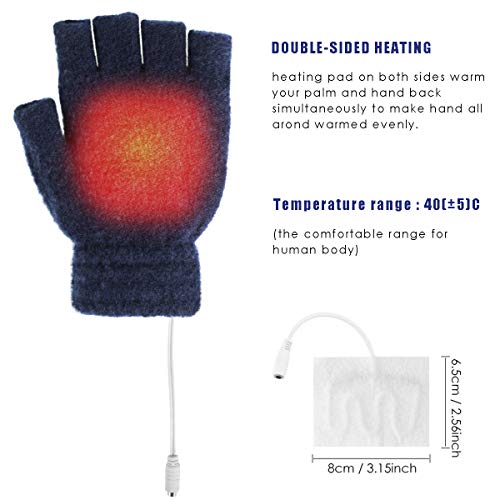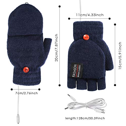 Rehomy Guanti riscaldati USB Mitten per uomini e donne, guanti per laptop completi e mezzo di dito invernali per uso interno o esterno (Marina oscura)