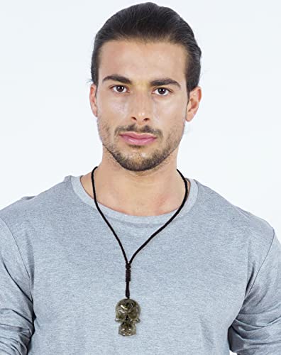 Reikiera Collana unisex con cranio con cordoncino in labradorite intagliata a mano con ciondolo a forma di cranio