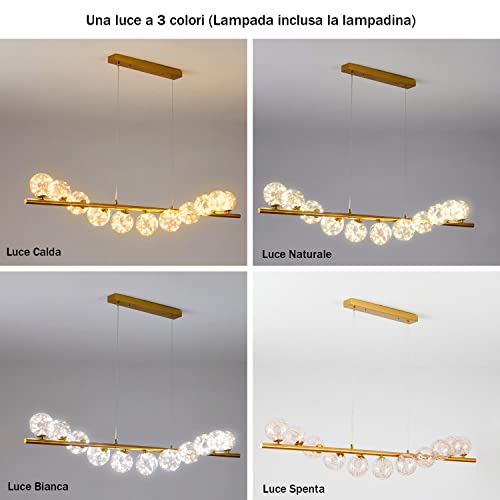 REIUYTHO Lampada a Sospensione Per Tavolo Da Pranzo a LED Lampadario In Vetro Oro Nordico Moderna Lampada Decorativa Tricolore, Sala Da Pranzo/Isola Di Cucina/Negozio(Lampadario a 11 Teste)
