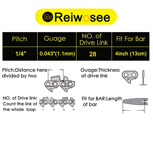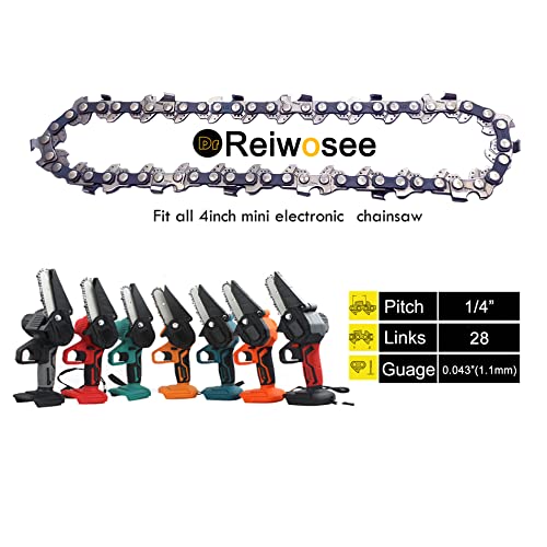 Reiwosee 2 catene per motosega da 4 pollici Mini Handheld ricaricabile 1/4" 1,1 mm 28 TG 13 cm per lavorazione del legno (1/4" 4" 28DL)
