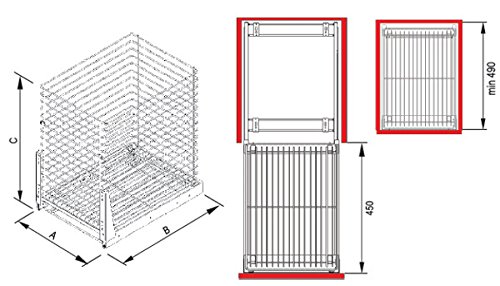 Rejs, Cestino estraibile per lavanderia, con chiusura morbida, colore: cromo, 300 mm