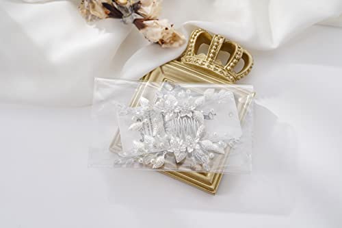 Relandy Pettine per capelli da sposa a forma di fiore, con foglie argentate, accessorio per capelli da sposa, per donne e ragazze