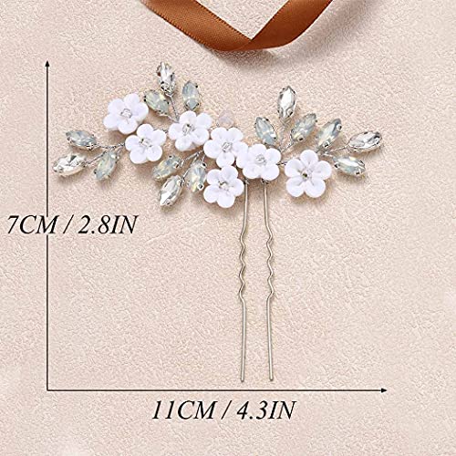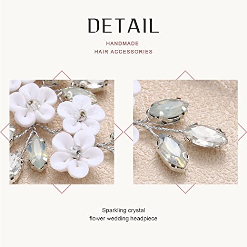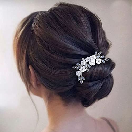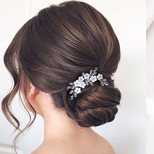 Relandy Spilla per capelli da sposa con fiore in argento e cristallo, accessorio per capelli da sposa per donne e ragazze