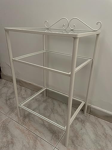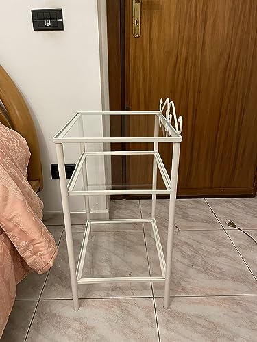 Relax e Design Comodino in Ferro battuto, nero e bianco, 3 ripiani in vetro (Bianco)