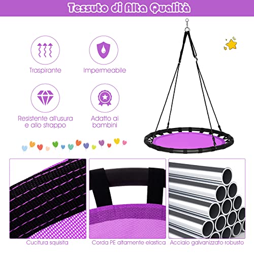 RELAX4LIFE Altalena da Giardino per Bambini, Altalena Rotonda a Rete con Corde Regolabili 100-160 cm, Altalena a Nido da Interno ed Esterno (Stile1-Viola)