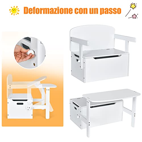RELAX4LIFE Cassapanca Contenitore Trasformabile 3 in 1 in Legno con Scatola Portaoggetti, Tavolo e Sedie, Scatola dei Giocattoli per Bambini Adatta per Casa e Scuola (Bianco)