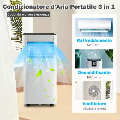 RELAX4LIFE 4 in 1 Condizionatore Portatile con Telecomando 9000 BTU, Raffreddamento, Ventilatore, Deumidificatore e Modalità Notturna, Blocco Bambini e Timer (9000BTU/MODELLO 1/NERO)