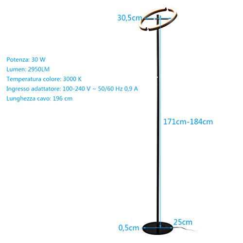 ★DESIGN FACILE DA USARE★Questa lampada da terra con una potenza di soli 30w può risparmiare energia in modo efficace. Il cavo di alimentazione lungo 185 cm facilita lo spostamento della lampada da terra. La nostra lampada da terra rivestita con vernice resistente all'usura è facile da installare grazie alla sua struttura semplice e alle istruzioni dettagliate.