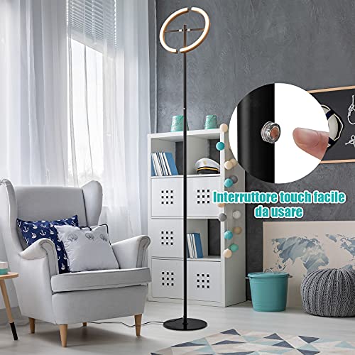 RELAX4LIFE Lampada da Terra a LED 30W/3000K/2950LM con Testa Girevole a 350°, Lampada a Basso Consumo con InterruttoreTattile e Luminosità Continua e Angolo Regolabile per Camera da Letto, Soggiorno