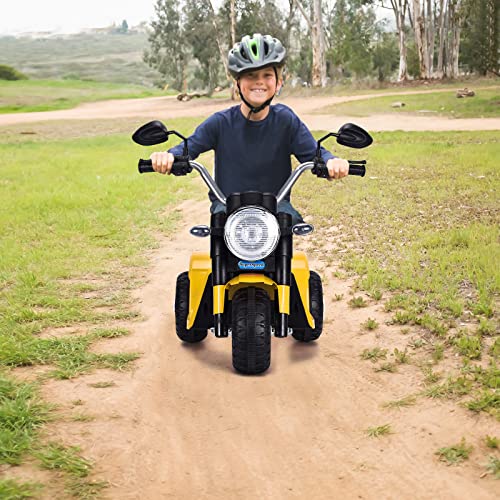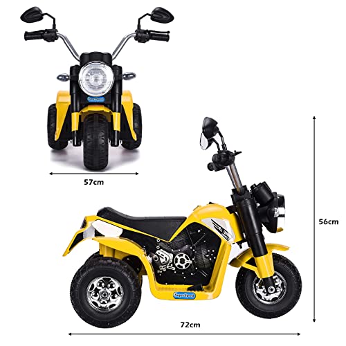 RELAX4LIFE 6V Motociclo Elettrico per Bambini con Luci e Clacson, Velocità Regolabile 3-4 km/h, Portata di 20 kg, 72 x 57 x 56 cm (GIALLA)
