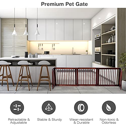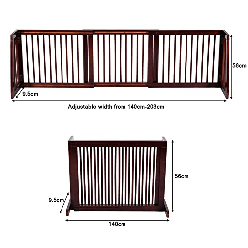 RELAX4LIFE Recinzione Estensibile per Scala per Animali, Cancello Retrattile per Cani e Conigli con 3 Pannelli Regolabili, Struttura Solida con Piedini Robusti, Facile da Montare, 203 x 56 cm, Marrone