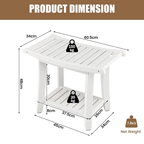 RELAX4LIFE Sgabello da Bagno con Ripiano Portaoggetti, Sgabello per Doccia in HDPE, Panca Doccia Fino a 150 kg per Adulti e Anziani (61 x 34 x 48cm, bianco)