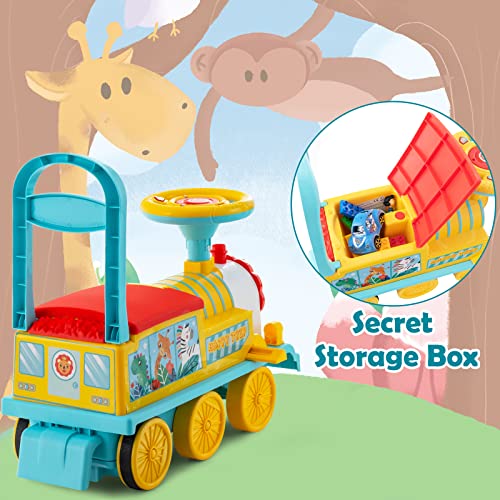 ★Design Multifunzione★Con un pulsante musicale sul volante, i bambini possono ascoltare la musica durante la guida e le luci colorate si illumineranno quando la musica suona. Un sacco di spazio di stoccaggio sotto il sedile. Può essere usato per mettere i giocattoli per bambini, il che è molto conveniente.