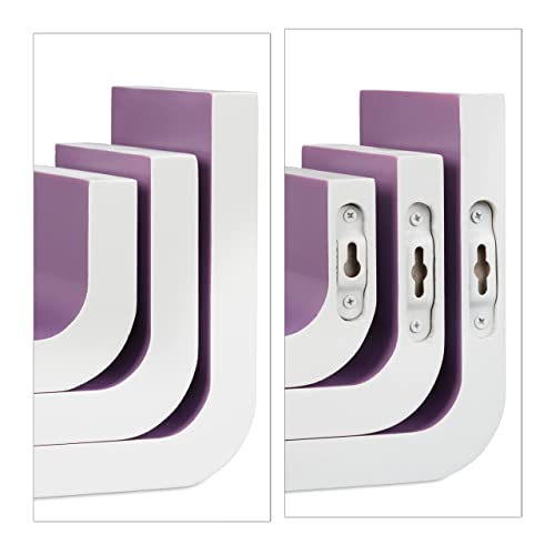 Relaxdays 1001810_749 Set 3 Mensole da Parete, a Forma di U, Legno, Larghezza 10 cm, Lunghezza 40 cm, Bianco-Viola