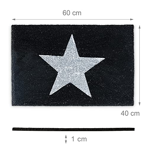 Relaxdays 10019008 Zerbino da Ingresso in Fibra di Cocco, Design Stella, 60x40 cm, Tappetino da Entrata, Interni e Esterni, Nero, PVC, 50 x 65 cm