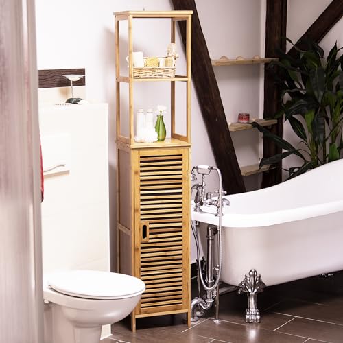 Relaxdays 10020300 Armadio da Bagno per Terra con scaffalatura e 6 Ripiani, Bambú, Marrone, 28x33.5x170 cm
