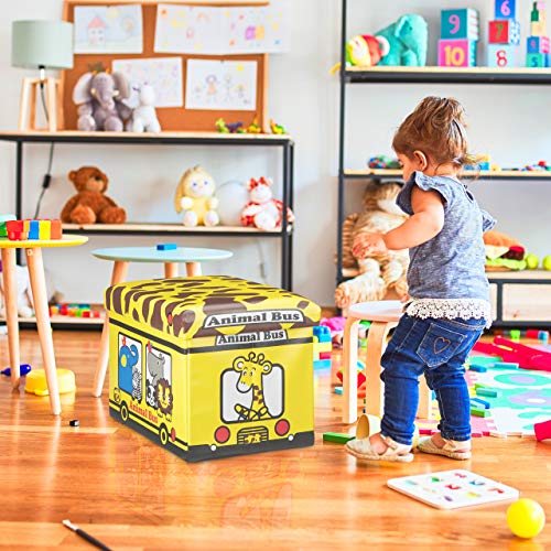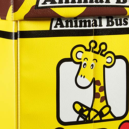 Relaxdays 10020376_546 Cesta Portagiochi Cameretta Bambini, Pieghevole, finta pelle, 37 L Volume, Bus Animali, 32x48x32 cm