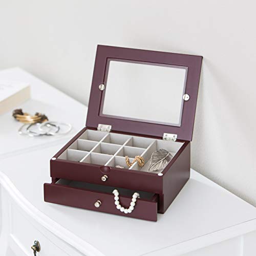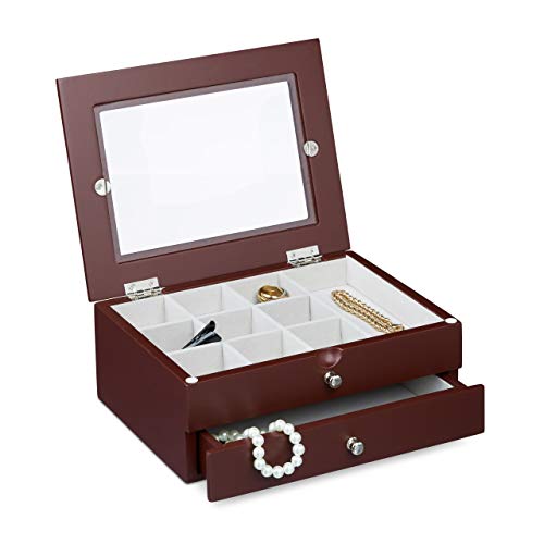 Relaxdays 10020418_531 Cofanetto Portagioie 1 Cassetto HLP 9x22x18 cm Astuccio Gioielli Scrigno Vetrina, Marrone Rossiccio