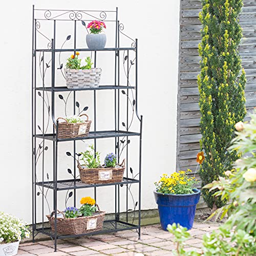Relaxdays 10020690 Scaffale per Piante GOTH, 5 Ripiani, Fioriera, Decorativa, Stile Antico, HxLxP: 173 x 73 x 34 cm, Nero