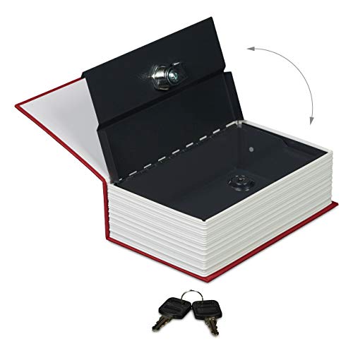 Relaxdays 10020798_47 Libro Cassaforte con Chiavi, Piccolo, Dizionario Tascabile, Acciaio, HxLxP: 18 x 11,5 x 5,5 cm, Rosso, Metallo, 5.5x11.5x18 cm