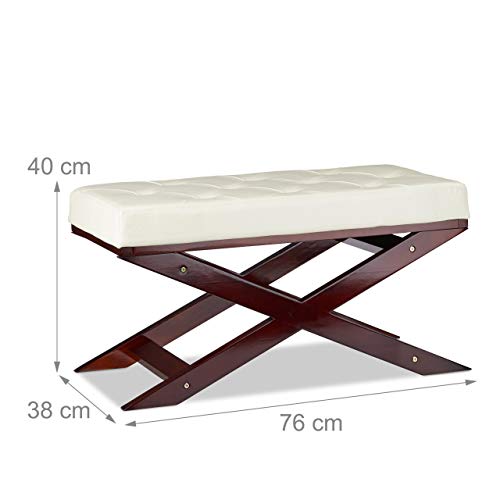 Relaxdays 10021210_49 Panca Senza Braccioli Due Posti, Finta_Pelle, Bianco, 76x38x40 cm
