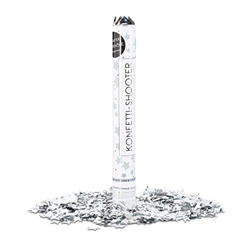 Relaxdays 10021764 Cannone Spara-Coriandoli, Argento, 40 cm, Stella, Gittata 8 m, Capodanno, Compleanno, Carnevale