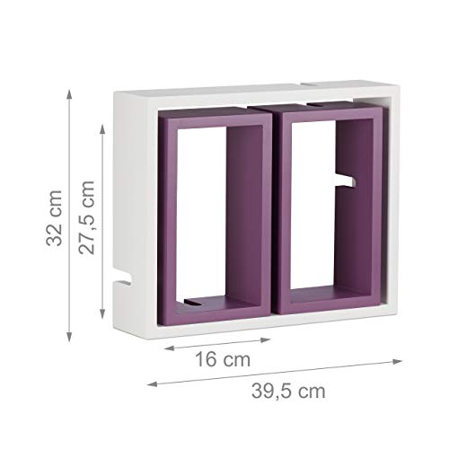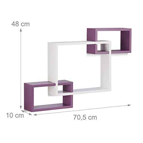 Relaxdays 10021805_749 Mensole da Parete Cube, Ripiani in Legno MDF, HxLxP: 48 x 70,5 x 10 cm, Bianco-Viola