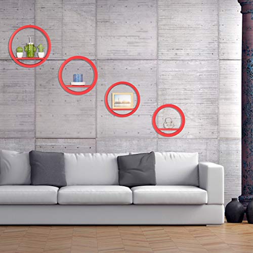 Relaxdays 10021816_47 Set 4 Mensole da Parete, Decorative, Legno MDF, Capacità di Carico 8 kg, Aperte, Rosso