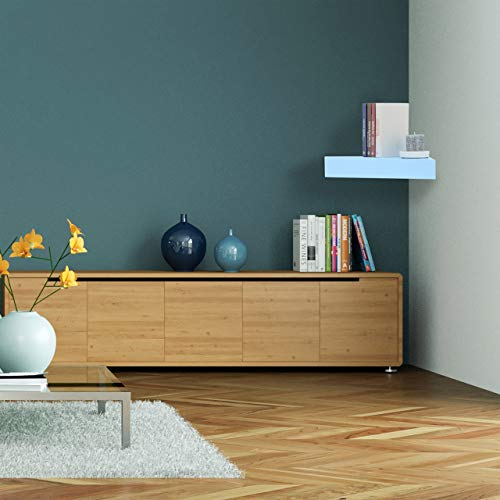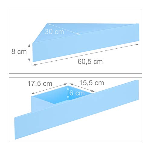 Relaxdays 10021886_45 Mensola da Muro Angolare, Ripiano Triangolare, Cassetto, Montaggio a Scomparsa, HxLxP: 8x60x30 cm, Blu, mdf