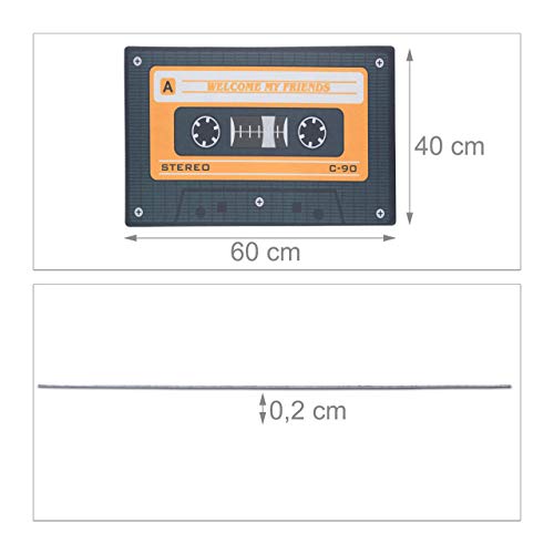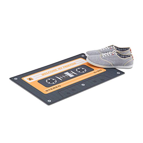 Relaxdays 10021923 Zerbino Asciugapassi Retro, Antiscivolo, Musicassetta, per Interni, PVC, 40x60 cm, Nero-Arancio