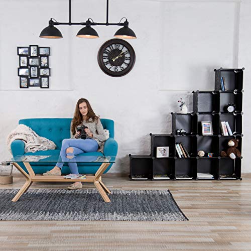 Relaxdays 10021959_46 Scaffale Componibile, in Plastica, Divisorio Ambienti, Cubi a Incastro, 15 Scomparti, Nero