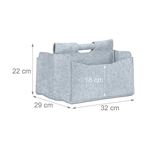 Relaxdays 10021974_111 Cesto Portariviste, in Feltro HxLxP: 22 x 32 x 29 cm 2 Scomparti con Manico Stand Portagiornali Pieghevole Grigio