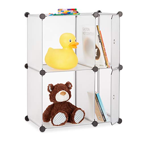 Relaxdays 10021984_50 Scaffale componibile con Ante, Scarpiera Armadio 4 Scomparti, Plastica, 56 x 75 x 37 cm, Trasparente