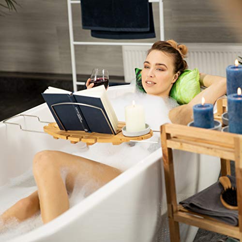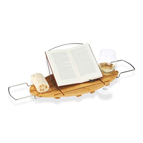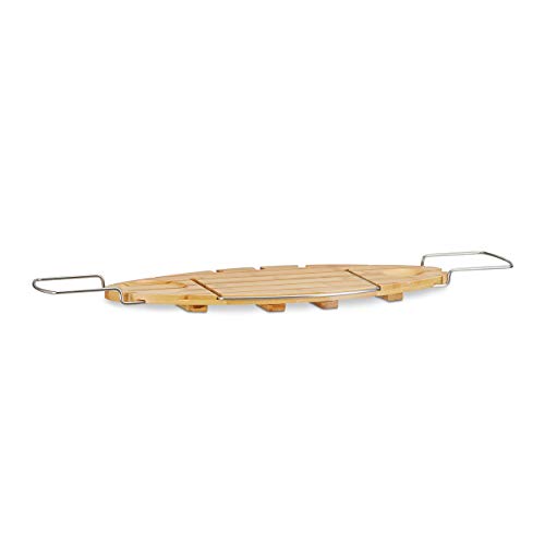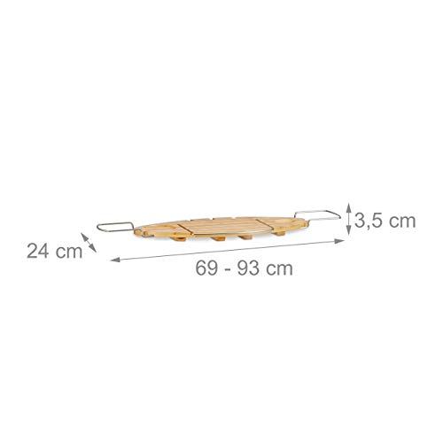 Relaxdays 10022167 Vassoio per Vasca da Bagno con Leggio, Allungabile, HxLxP: 3,5x93x24cm, Marrone Chiaro