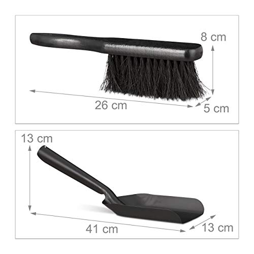 Relaxdays 10022311 Paletta e Scopetta, 41 cm, Acciaio, Set Accessori Pulizia Casa, Pala Raccogli Cenere Camino, Nero