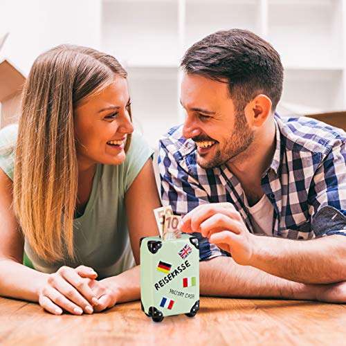 Relaxdays 10022334_93 Salvadanaio Portamonete Cassetta Porta Soldi a Forma di Valigia Viaggio HxLxP: 14,5 x 9,5 x 5 cm Verde Menta