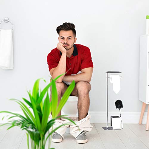 Porta carta igienica autoportante con supporto per spazzole: posizione sicura su una piastra di base stabile. Dimensioni base (larghezza x profondità): circa 20 x 13,5 cm. Il dispenser di carta igienica si trova in circa 60 cm altezza
