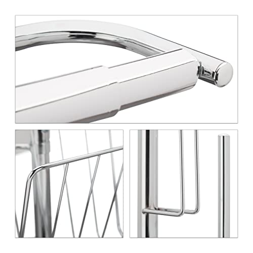 Relaxdays 10022548 Piantana Bagno con Porta Carta Igienica Scopino e Portascopino Portariviste HxLxP: 69 x 30 x 22 cm, Argento