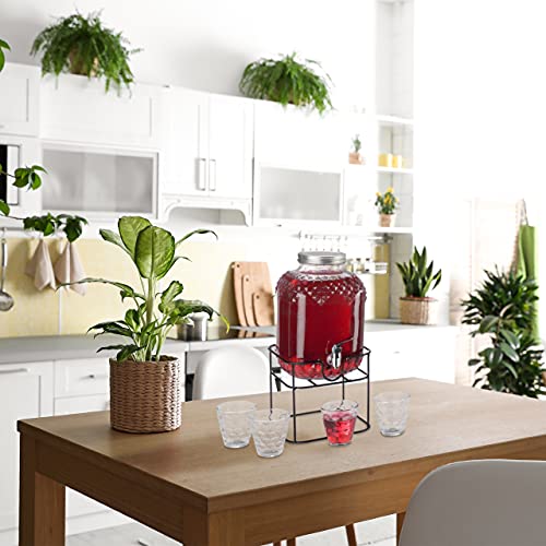 Relaxdays 10037677, Dispenser per Bevande in Set, Distributore Acqua 6 L, 4 Bicchieri Retro Erogatore con Rubinetto, Trasparente