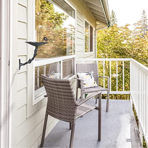 Relaxdays Abbeveratoio in Ghisa per Uccelli, Resistente alle Intemperie, Vaschetta da Parete per Volatili, Nero Argento, 21 x 17 x 22 cm