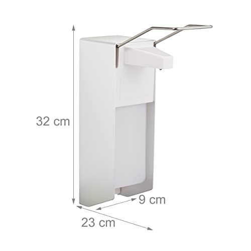 Relaxdays, Argento Dispenser di Sapone a Parete, 1000 ml, Erogatore Disinfettante, Portasapone a Muro Manuale con Leva, plastica, Metallo, 1 pz