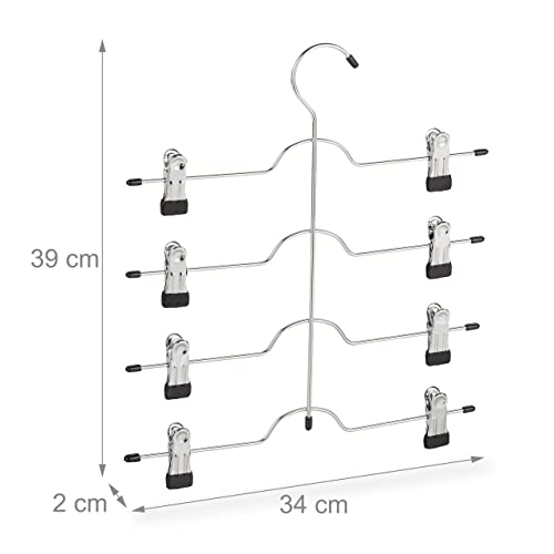 Relaxdays, Argento Grucce Multiple in Set da 2, Stampelle per Gonne o Pantaloni, con Pinze, Salvaspazio, Antiscivolo, metallo, PVC