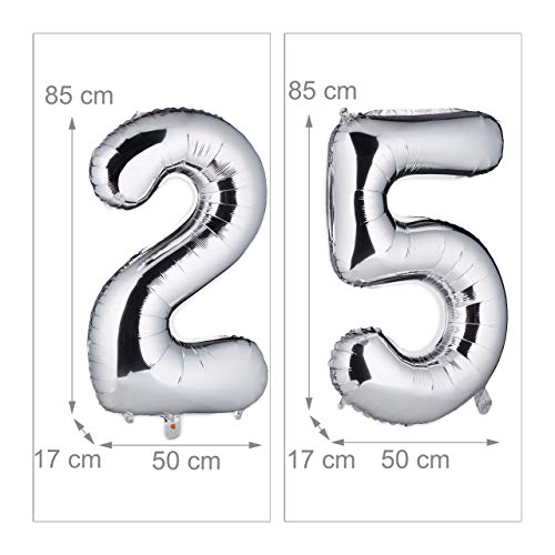 Relaxdays Argento Palloncini Giganti in Foil con Numero 25 per Compleanni, Anniversari di Matrimonio XXL 85-100cm Colore, 85,00 x 50,00 x 17,00 cm