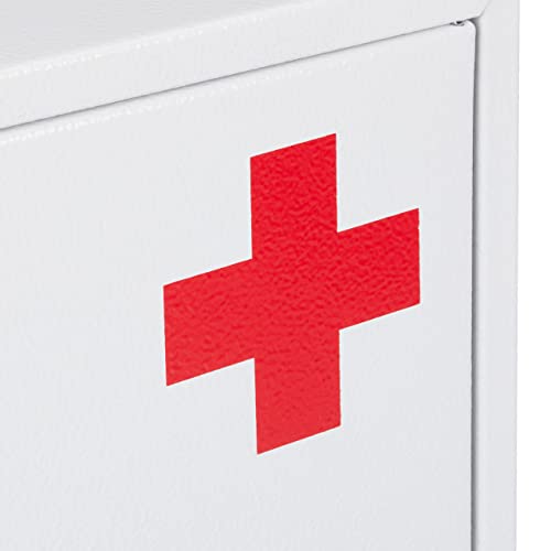 Relaxdays Armadietto Pronto Soccorso, Cassetta Medica, 2 Scomparti, Kit Medicinali, da Muro, 32x21,5x8 cm, Bianco/Rosso, Ferro