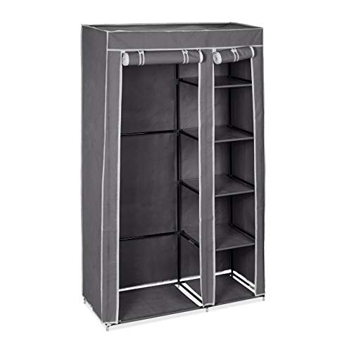 Relaxdays Armadio di Stoffa con Asta Attaccapanni, 5 Scomparti, Guardaroba Pieghevole, Rivestimento in Tessuto, Grigio, Antracite, 1 pz
