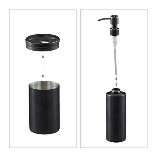 Relaxdays Bagno Completo, 4 Accessori, Kit WC Acciaio Inox Spazzolato, Portaspazzolino, Sapone e Saponetta, Nero, 90% 10% plastica, Antracite, Set da 1 pz