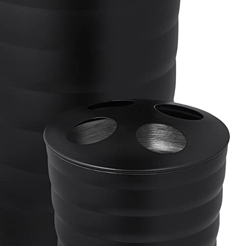 Relaxdays Bagno Completo 5 Accessori, Acciaio Inox Spazzolato, Scopino WC, Portaspazzolino, Sapone e Saponetta, Nero, Set da 1