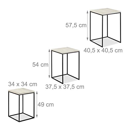 Relaxdays, Bianco Tavolino da Salotto, Set da 3, Ripiano in Legno di Mango, Quadrato, Telaio in Metallo, Industrial, ferro, 57,5 x 40,5 x 40,5 cm